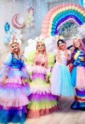 Золушка, Белоснежка и Рапунцель пригласят именинницу и ее гостей на балл в сказочном замке! Принцессы выберут себе диадему и волшебную палочку, будут кружиться в танце под музыку! Чудеса начнутся во время представления с мыльными пузырями и воздушными шарами, а завершит коронация!