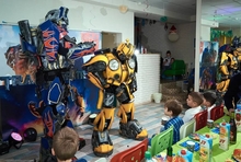 Есть несколько вариантов шоу-программы, с участием бамбалби 2.15 метра и Оптимус 2.35 метра и ведущий. Вся программа идёт под музыку и голоса трансформеров и вместе с ребятами :